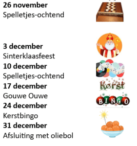 De activiteitenochtend, die om de week in de oneven weken plaatsvindt in het Dorpshuus, is bedoeld voor alle ouderen in Heino. Naast het thema “Bewegen” zullen tijdens deze ochtenden ook andere thema’s zoals muziek, herinneringen en kunstbeleving aan bod komen.