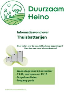 Informatieavond over de thuisbatterij op woensdag 26 november in Heino